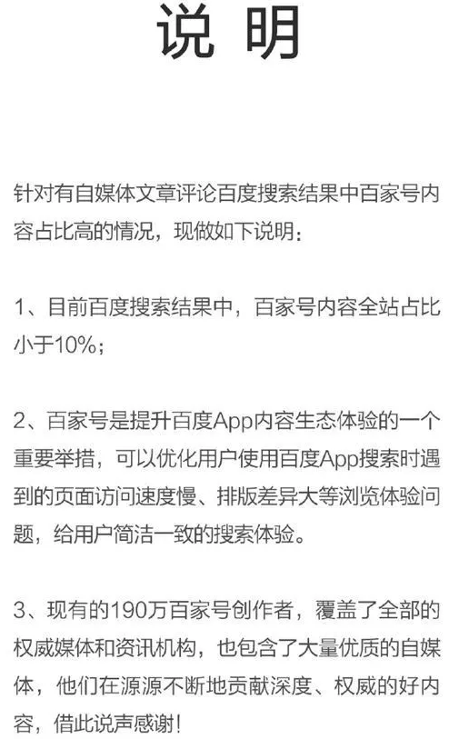 這篇《搜索引擎百度已死》的文能引起百度官方重視,足以證明該文章的影響力不可小覷。因為百度第二天就發(fā)出了公告說明。內(nèi)容如下: